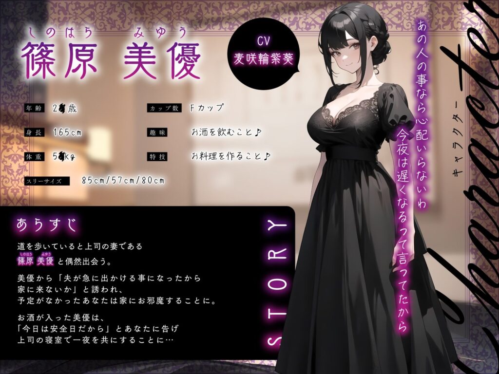 欲求不満な上司妻の夜会に一人で呼ばれてお酒をのんだら…「今日安全日なの♪一晩だけ…付き合ってくれない?」
