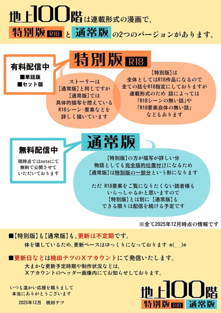 今すぐ読む!完全版を読む!『地上100階』特別版 22・23話発売日: 2026年2月3日ボリューム: 42 分ジャンル: 辱め、羞恥、処女、巨乳、寝取り・寝取られ・NTR、おっぱい、人外娘・モンスター娘、男性向け、成人向け、黒髪、本番なし、黒ギャル【FANZA】『地... -