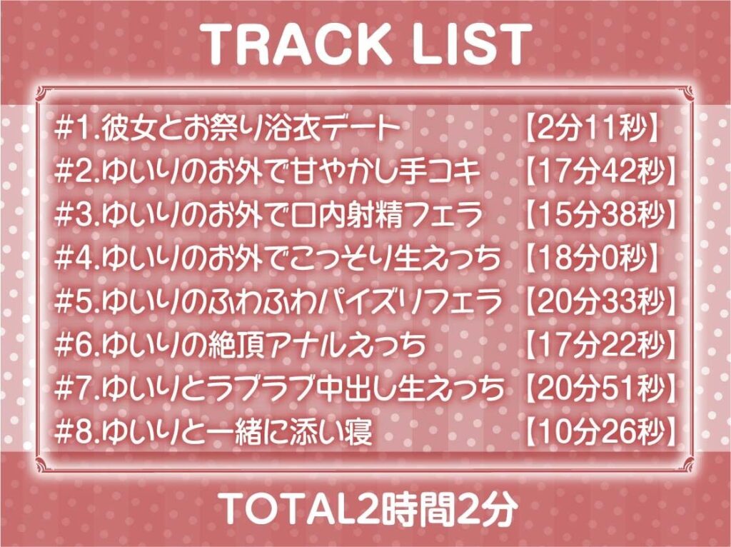 今すぐ読む!完全版を読む!浴衣デートでお祭りイチャイチャえっち【フォーリーサウンド】発売日: 2023年8月5日ボリューム: 8本 (約122分)ジャンル: 中出し、フェラ、アナル、パイズリ、ラブラブ・あまあま、癒し、男性向け、成人向け、手コキ【FANZA】浴... -